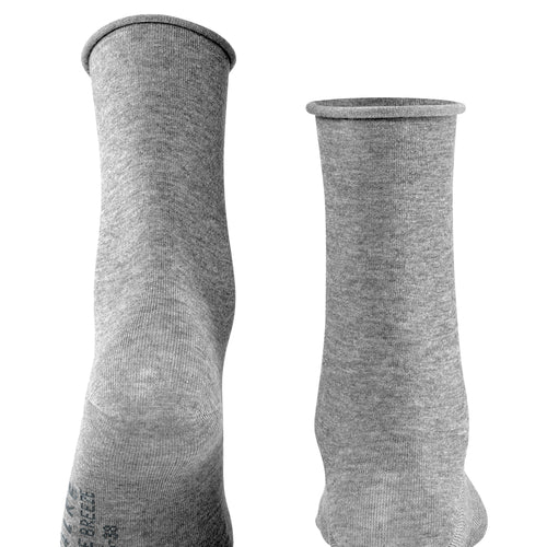 These socks guarantee a pleasantly fresh feeling on the skin thanks to the use of soft, skin-flattering TENCEL™ Lyocell. The FALKE Active Breeze not only offers great wearing comfort, but is also made of a sustainable FALKE - WE CARE - yarn composition. TENCEL™ Lyocell is a biodegradable fibre obtained from sustainably grown, FSC-certified eucalyptus wood. The cultivation of eucalyptus trees does not depend on artificial irrigation and fertilisation and is much more resource-efficient than the cultivation of cotton, for example. The fibre is produced in a closed cycle and is therefore particularly environmentally friendly. Resulting in a material that is particularly skin-flattering and provides a high level of breathability and fast moisture transport. The exceptionally smooth and slightly silky look of the Tencel ™ Lyocell and the pleasant rolled cuff lend these socks a feminine touch.