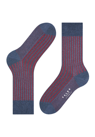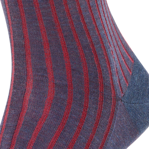 Elegant, discretely patterned business sock made of mercerised cotton. With this design, the second colour remains in the shadow of the actual colour. Pressure-free, hand-linked toe seam. Reinforced stress zones ensure optimum durability. Easy care.