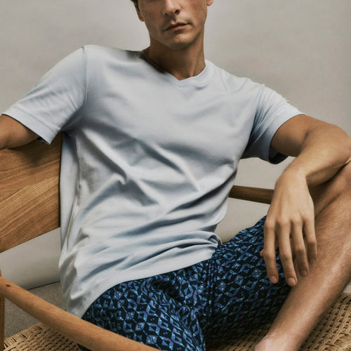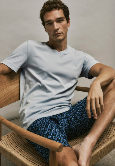 Versatile enough to wear as loungewear or sleepwear, the classically styled Night & Day short pajama is a good option for all day relaxation. Tailored from 100% interlock cotton, this men's pajama is a fun addition with its printed pant, v-neckline, covered elastic waistband, and side pockets.