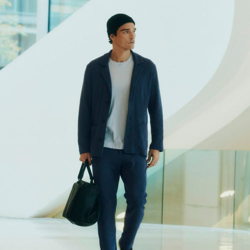 - Matching, comfortable pants available for a chic two-piece suit