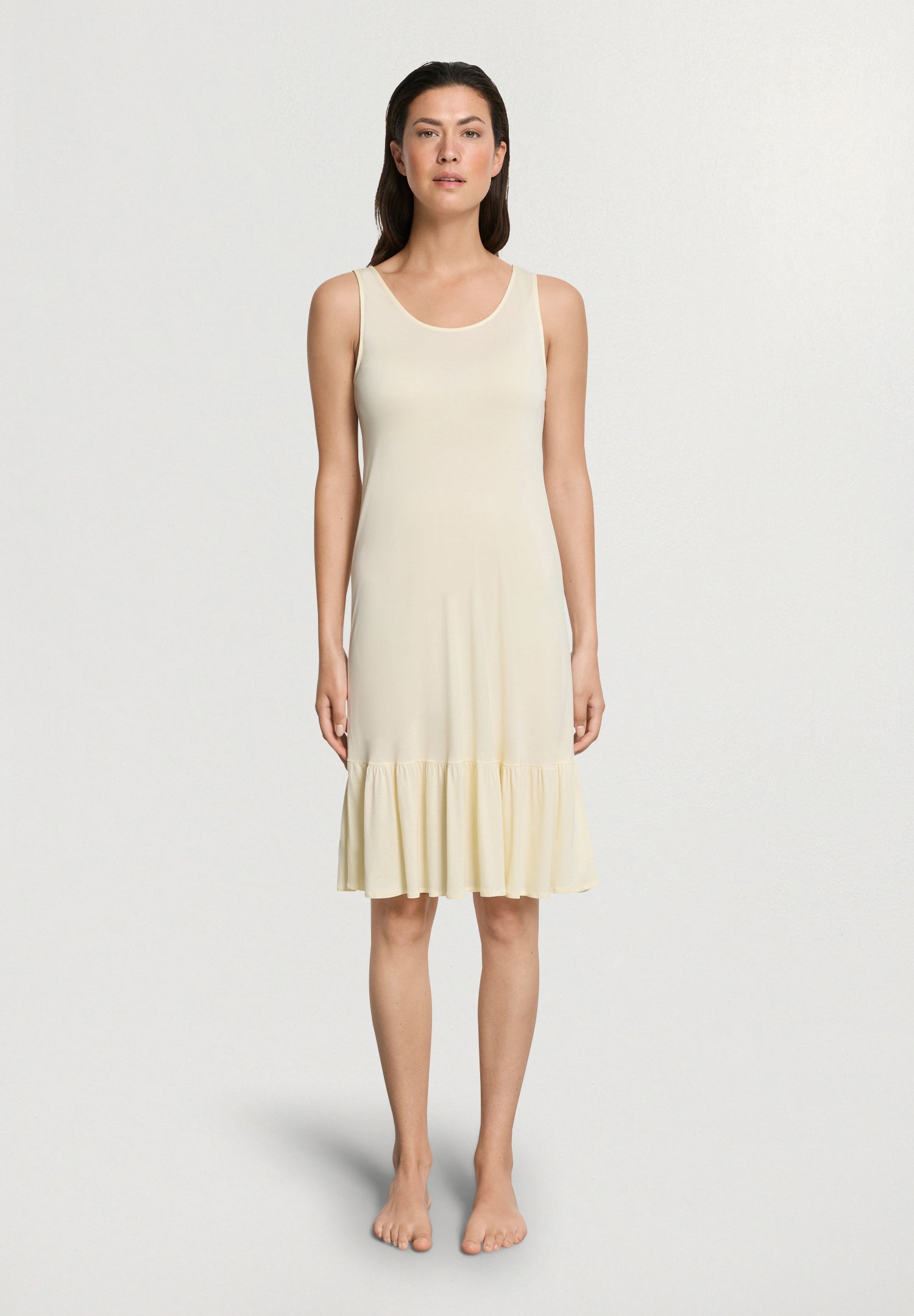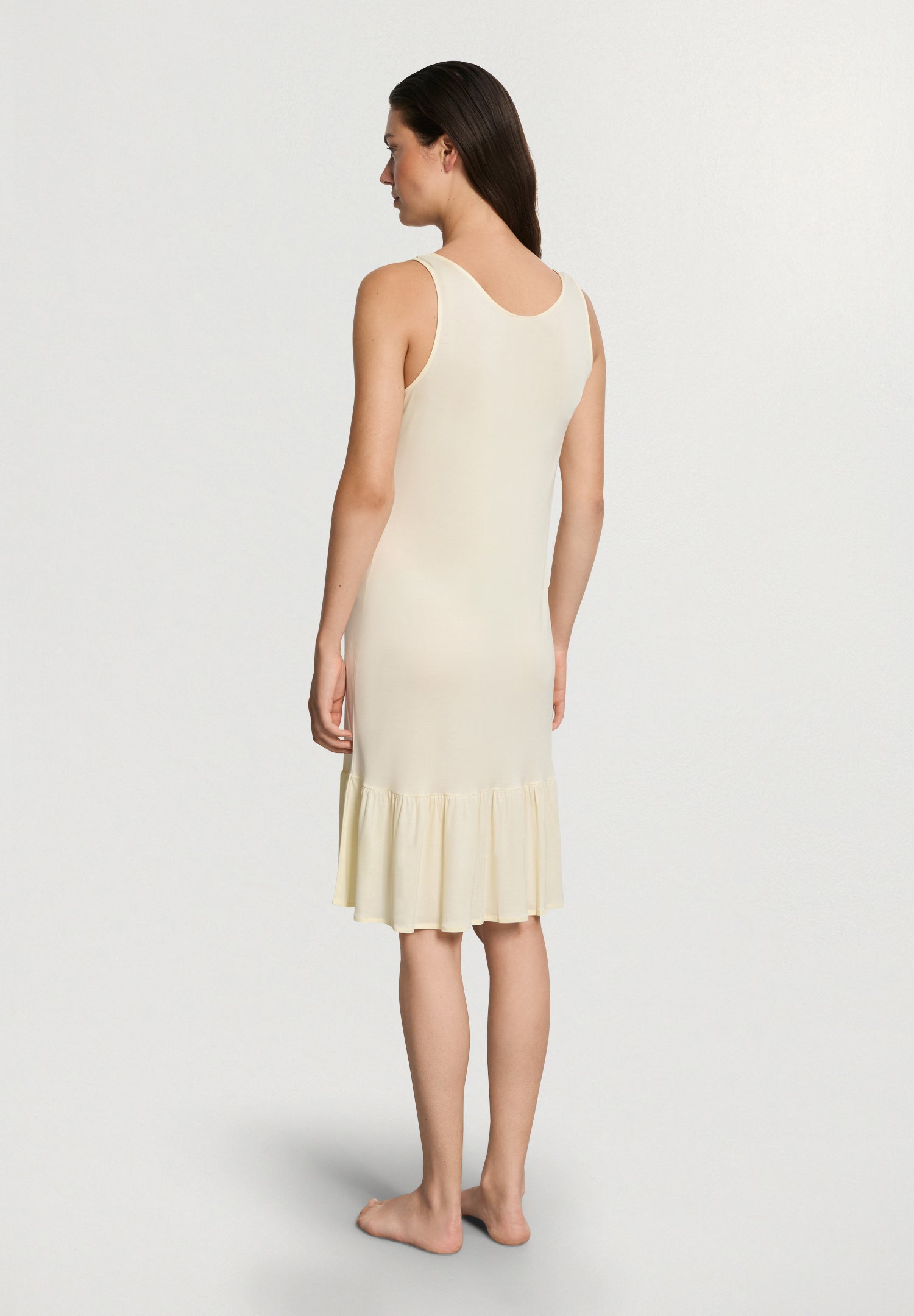 Fine, soft, lightweight -- that's the feel of this sleeveless dress with crew neck and flounce trim along the hem. The comfortable TENCEL™ Micromodal made in-house in Austria is ideal in warm weather thanks to its effective moisture management. With its loose cut, this tank nightgown follows your every move -- whether you're sleeping, at the beach or traveling. Lovers of modern sleepwear will appreciate the uncomplicated design of this feminine style, which makes the hybrid nightgown look just as stylish at the bar and beach. Matching, color-coordinated daywear is available.