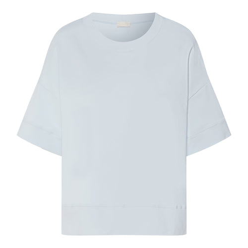 Organic cotton is a good choice for a natural feel against the skin -- like this sweatshirt with short, oversized sleeves. It is made from soft, shape-retaining French terry with a small amount of elastane for a comfortable fit. The short sleeve top is modern and casual with a timeless design. Ribbed trim adorns the crew neck and hem. This sustainable style is perfect for lounging and feeling good at home, on vacation or on the go. Pair it with our matching shorts or 7/8-length pants for a trendy summer set.