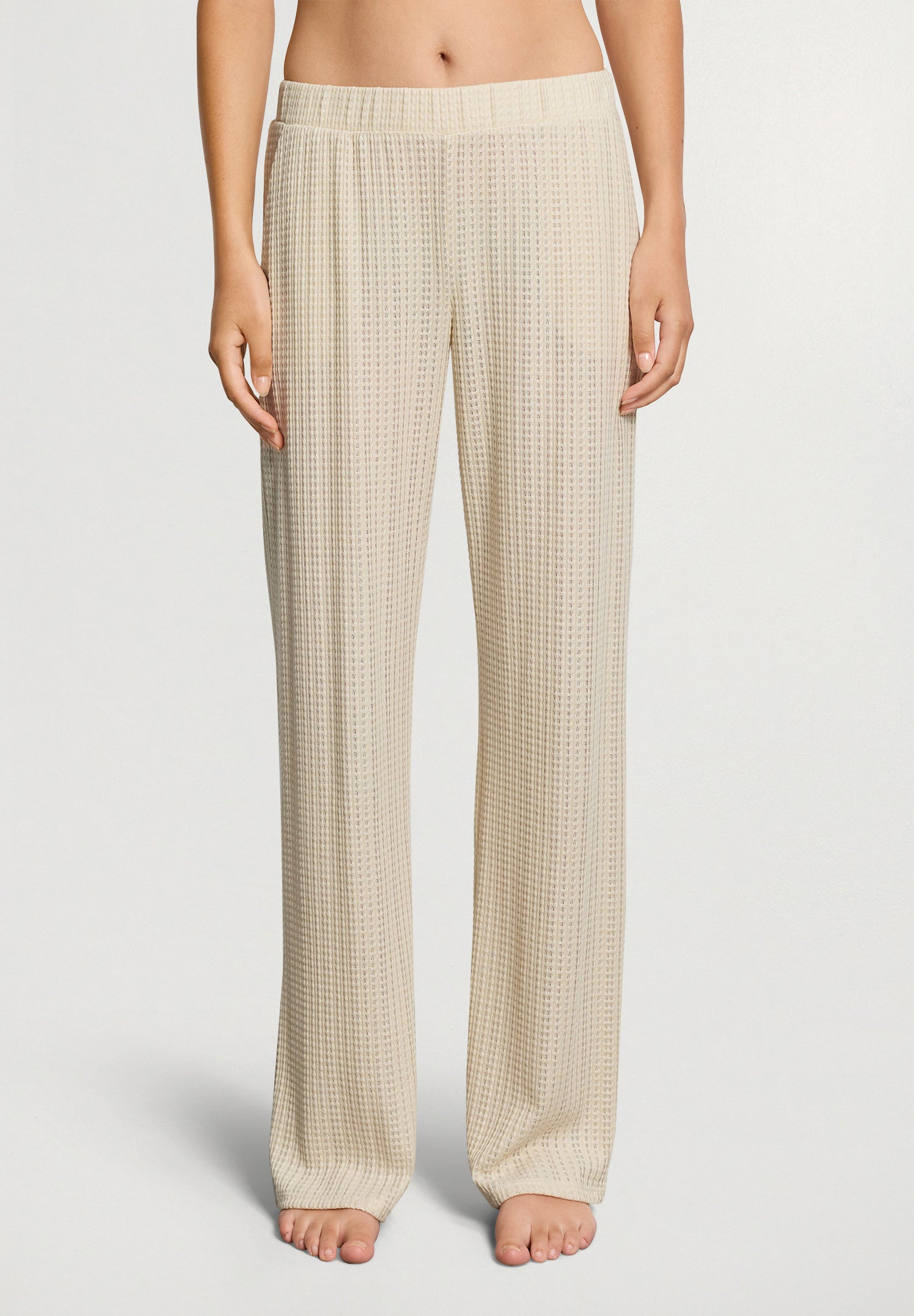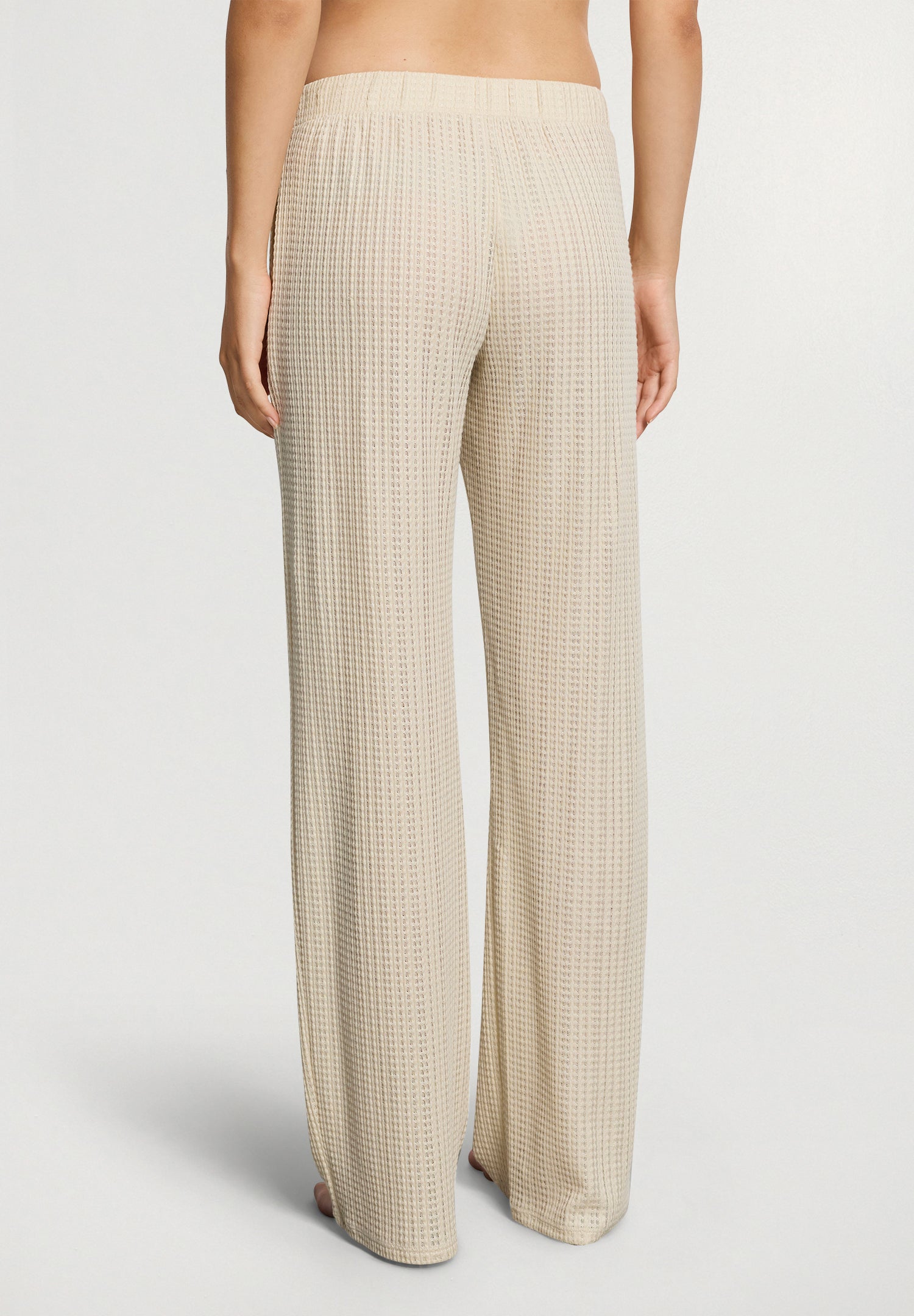 Sustainable journeys begin best in these comfortable long pants made from biodegradable TENCEL™ Lyocell and natural cotton. The soft fabric is characterized by good moisture management, quick-drying, and anti-odor properties. It is precisely these properties that make these straight-leg pants indispensable as travel wear. The design is visually appealing with its textured fine knit and loose fit. Two side pockets and the smooth, elastic waistband at the front ensure they are comfortable when traveling, on vacation, and in everyday life.