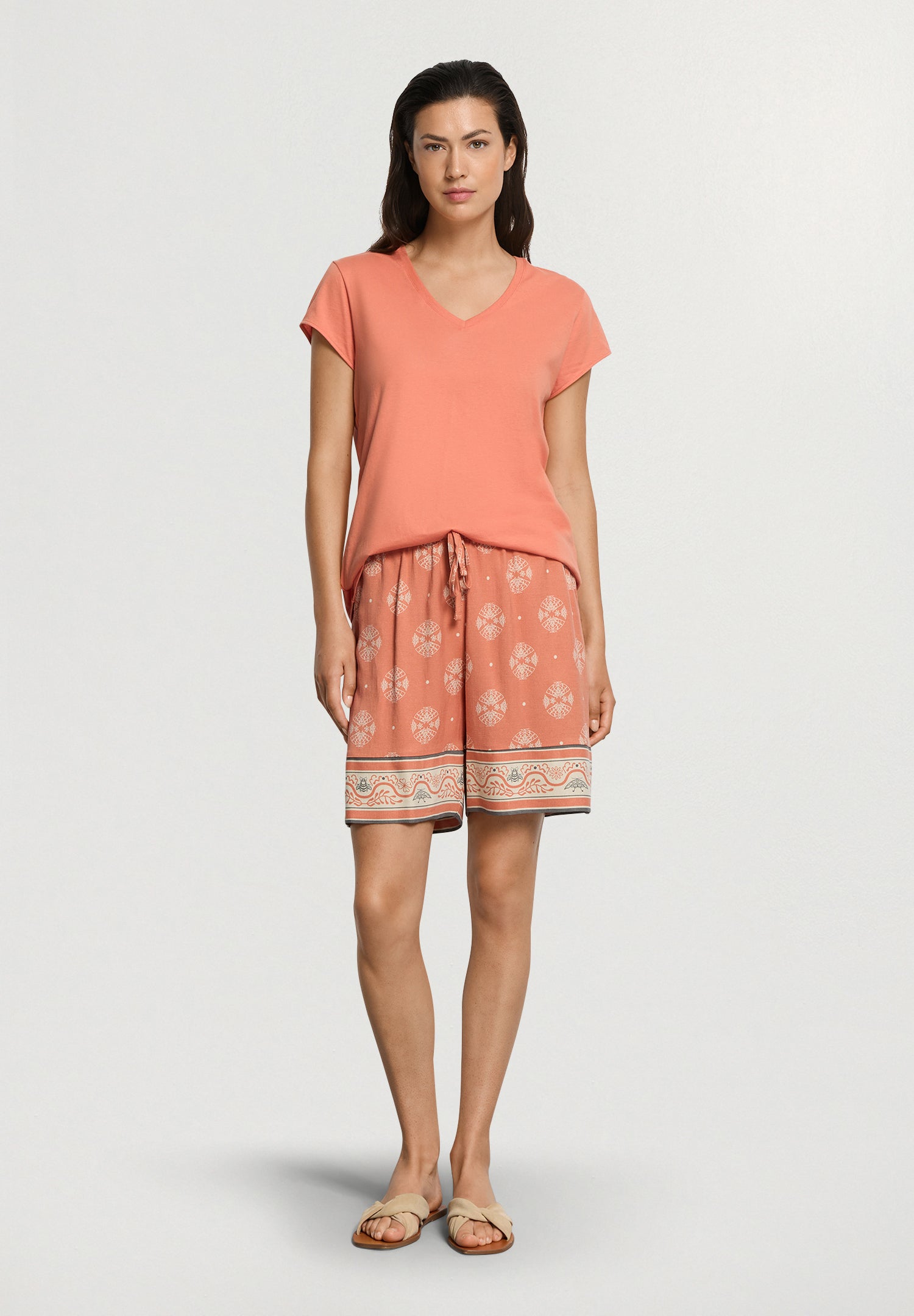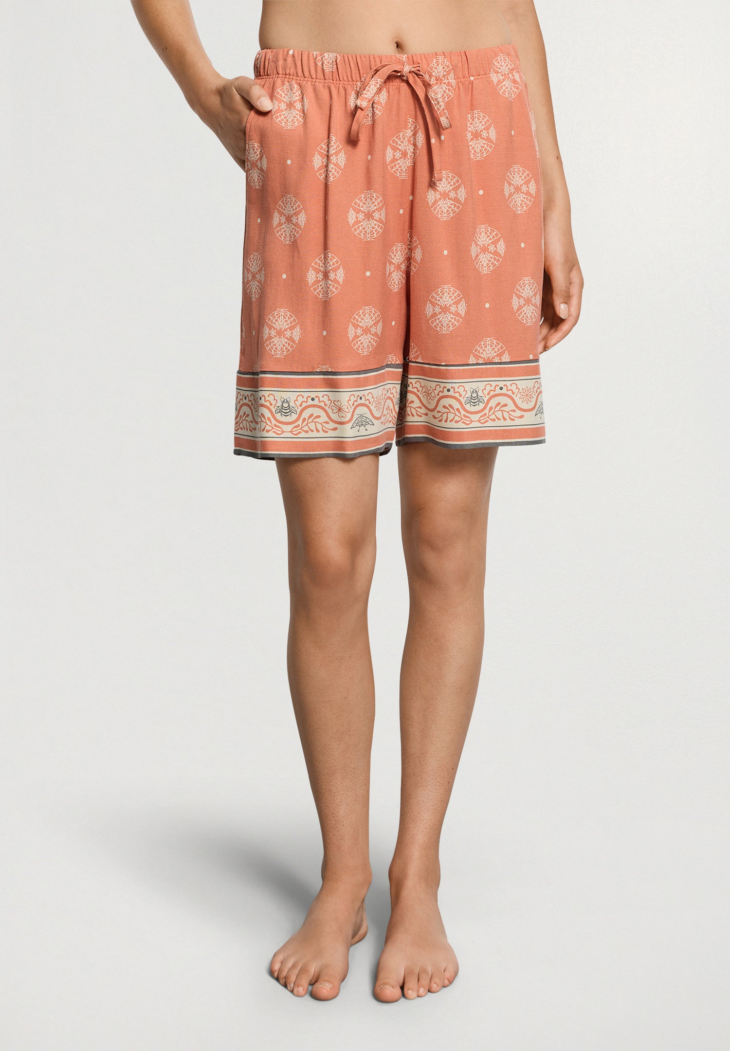 Create casual leisure looks with these summer shorts made of airy woven fabric. This fabric blend is particularly popular in warmer weather: linen has an antistatic, cooling, and dirt-repellent effect. Cupro balances temperature, allows air to reach the body, and absorbs moisture. These patterned shorts with exclusive HANRO printed trim by our in-house designer flatter the skin and shimmer in a sophisticated, subtle way. What's more, the shorts with pockets and a comfortable waistband can be perfectly paired with the top from the same collection.