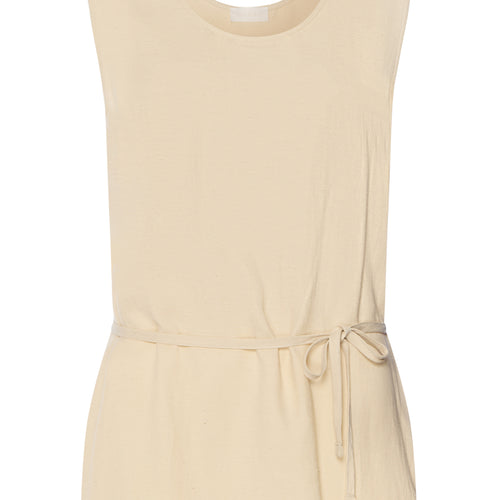 This sleeveless shirt in a unique cupro-linen-viscose blend is summery, airy, and lightweight. This exclusive material blend combines the most popular properties for warm weather: it is cooling, breathable, and comfortable against the skin. The matching tie belt can be used to adjust the waist of the delicate, shiny tank top or worn in a relaxed A-line style without gathers. The silky-soft top pairs perfectly with pants in the same fabric with printed trim or with our patterned pants from the same line. This results in high-quality yet casual looks for leisure, travel, and everyday wear.