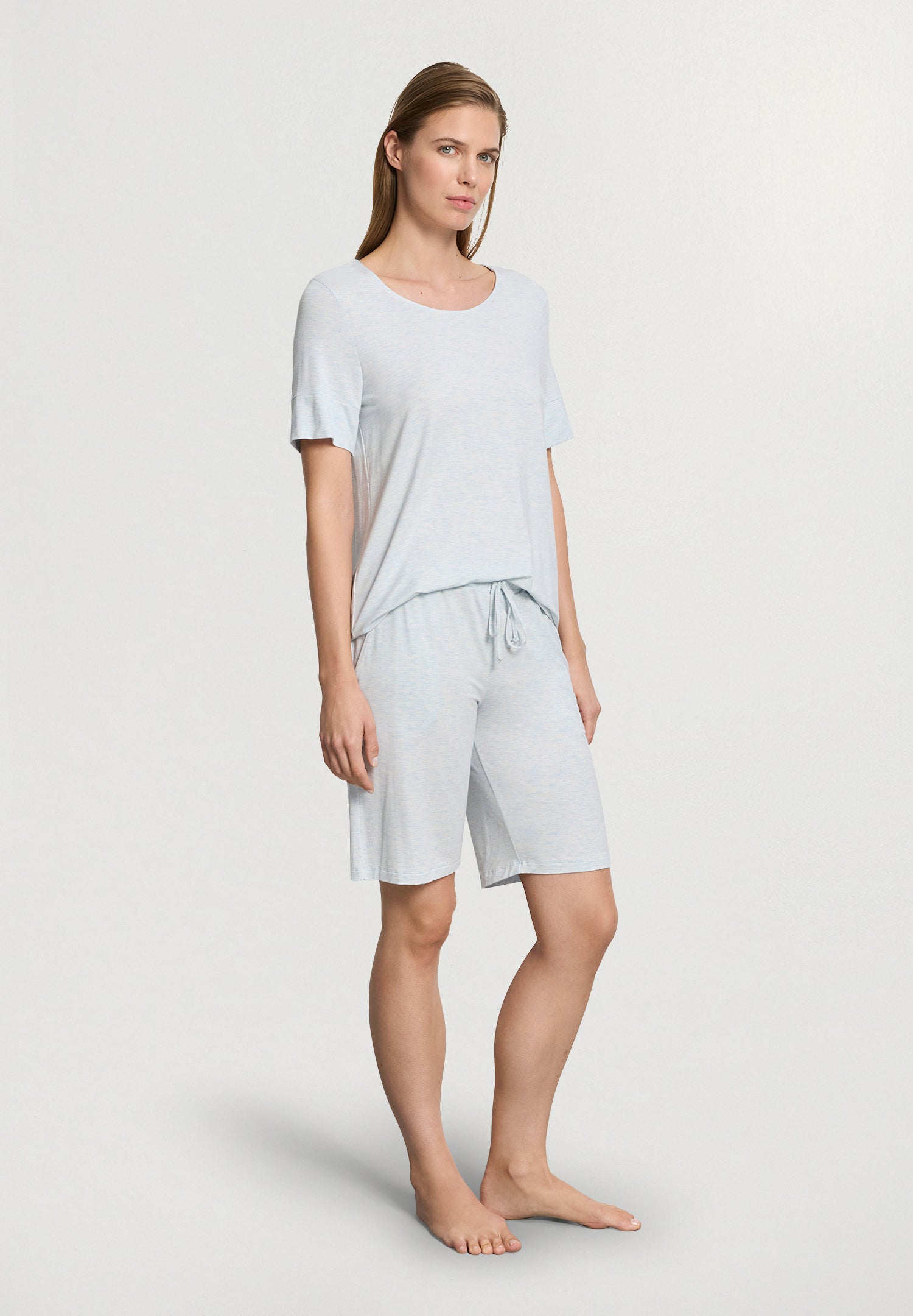 Natural Elegance, clean nightwear made from a soft, flowing mélange viscose fabric that feels wonderful on the skin. The collection features modern, casual cuts and sophisticated design details. An easy choice to sleep or lounge, these shorts pair back to the tops in the collection for the perfect set.