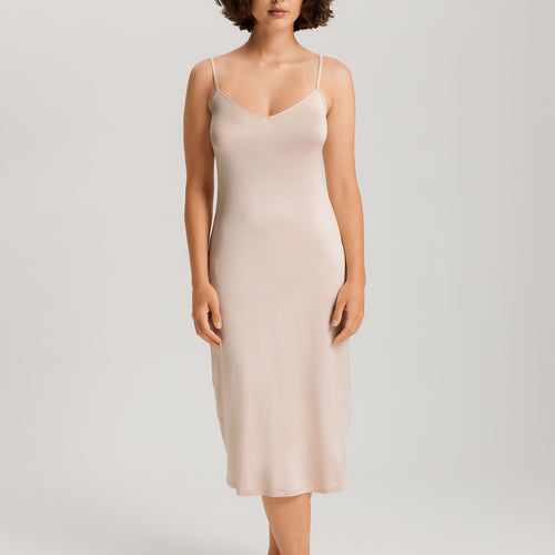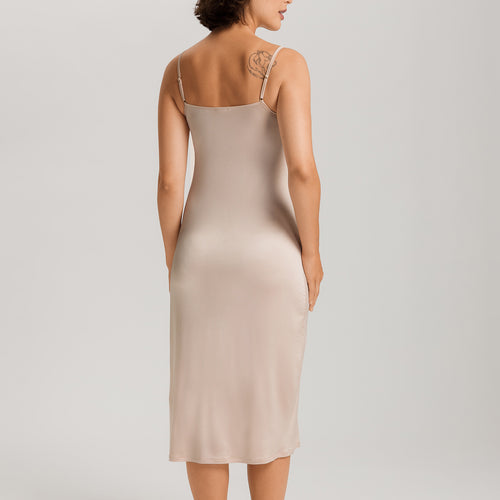The Satin Deluxe Collection features sensual, feminine lingerie. This 110cm bodydress is made from smooth, softly flowing viscose satin with appealing picot edging. It feels luxurious on the skin. This is a new HANRO basic- bodydress with adjustable straps.
