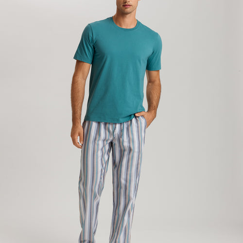 The Night and Day Woven Pants are a contemporary style from Hanro. Tailored from a cotton and Tencel™ blend, these men's pants feature practical side pockets and a button fly, plus a covered elastic waistband for a custom fit. Mix and match with the entire collection to create many looks for both sleeping and lounging.