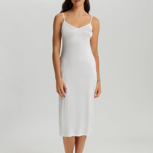 The Satin Deluxe Collection features sensual, feminine lingerie. This 110cm bodydress is made from smooth, softly flowing viscose satin with appealing picot edging. It feels luxurious on the skin. This is a new HANRO basic- bodydress with adjustable straps.