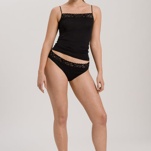 Feminine and versatile, the HANRO Moments Camisole Top features a sleek, flattering design trimmed with French lace along the neckline and spaghetti straps adjust in the back with nickel-free, metal hardware, for a touch of everyday elegance. Tailored from 100% Mercerized long-staple cotton®, this camisole top also boasts no side seams; for comfort and a smooth profile beneath clothes.