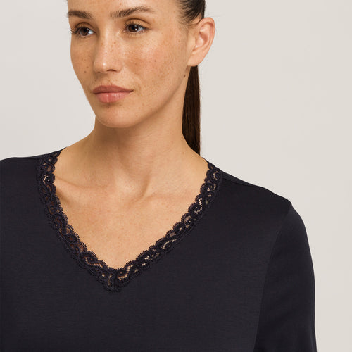 Elegant and feminine, the HANRO Moments long sleeve pajama is tailored from 100% mercerized cotton for incredible nighttime comfort. This style is trimmed in lace feels and wonderful on the skin. This will soon become your favorite style while sleeping and lounging.