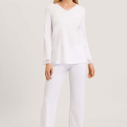 Elegant and feminine, the HANRO Moments long sleeve pajama is tailored from 100% mercerized cotton for incredible nighttime comfort. This style is trimmed in lace feels and wonderful on the skin. This will soon become your favorite style while sleeping and lounging.