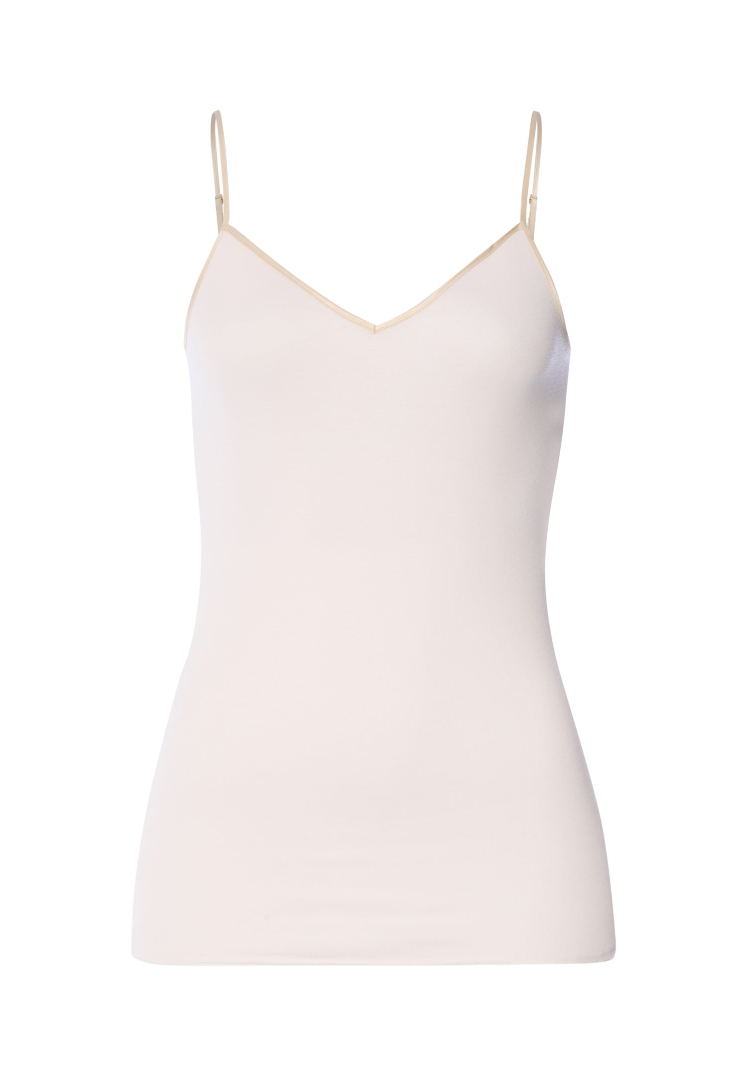 • 100% mercerized cotton spaghetti cami with hemless bottom