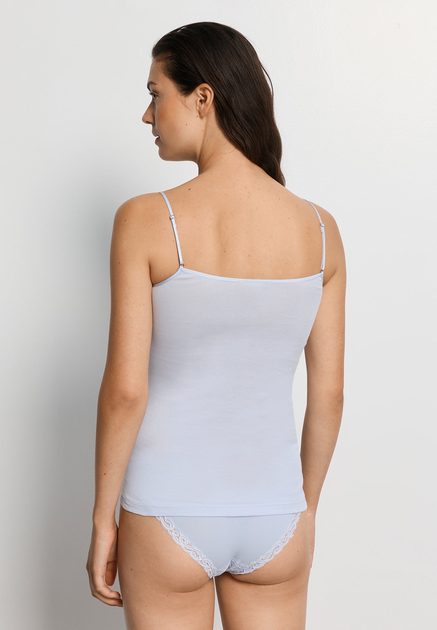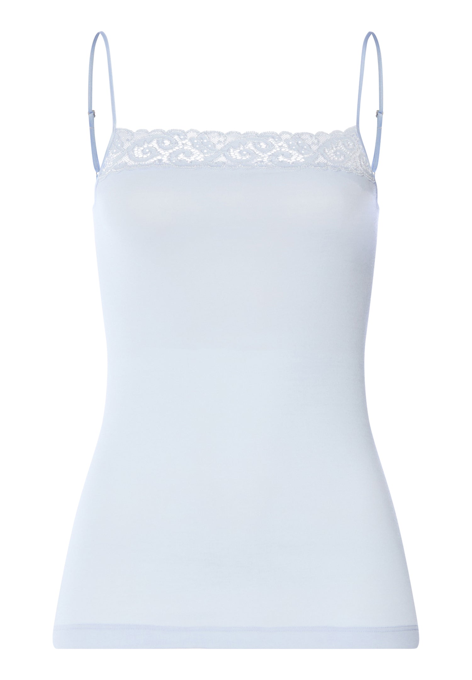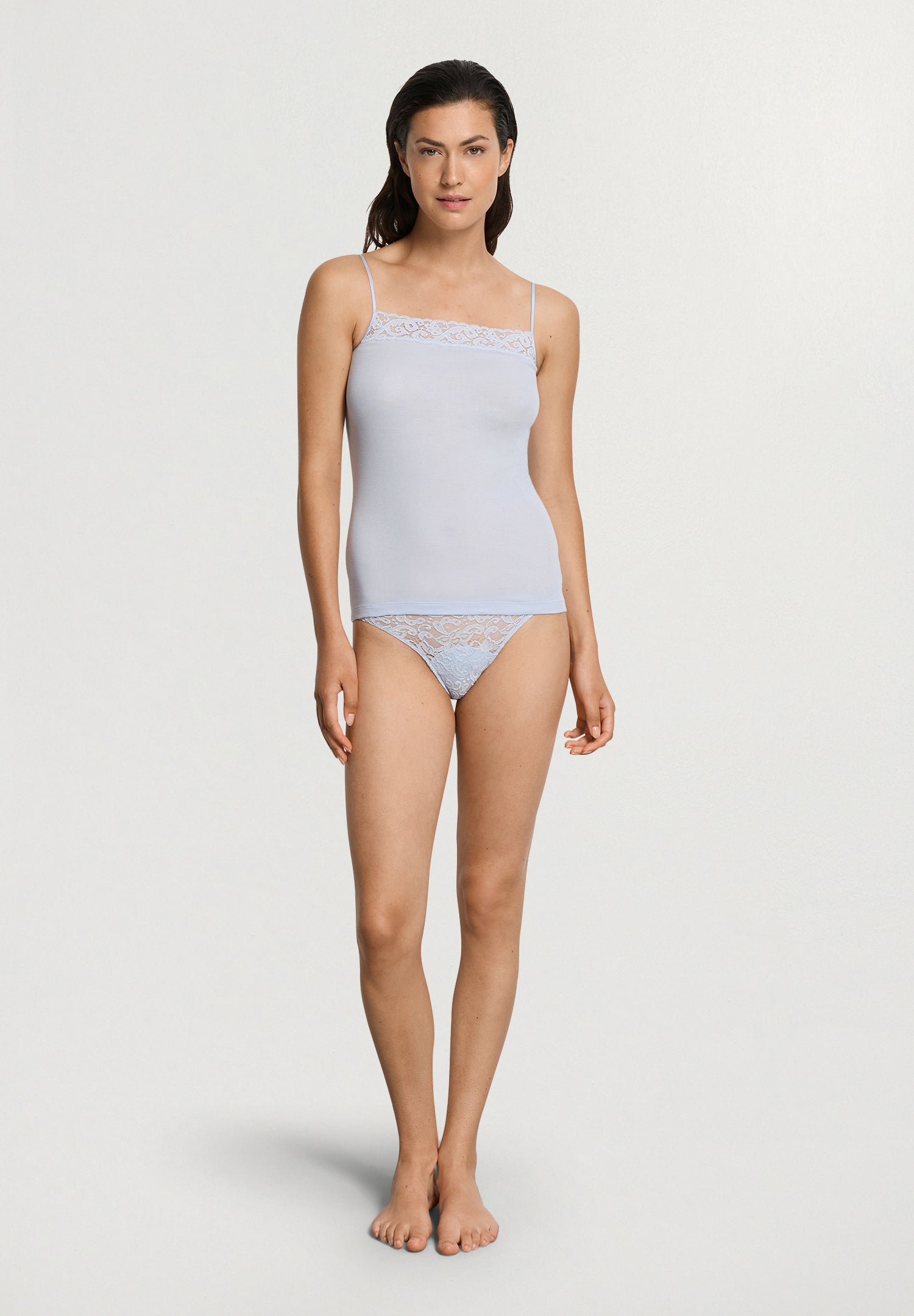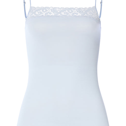 Feminine and versatile, the HANRO Moments Camisole Top features a sleek, flattering design trimmed with French lace along the neckline and spaghetti straps adjust in the back with nickel-free, metal hardware, for a touch of everyday elegance. Tailored from 100% Mercerized long-staple cotton, this camisole top also boasts no side seams for comfort and a smooth profile beneath clothes.