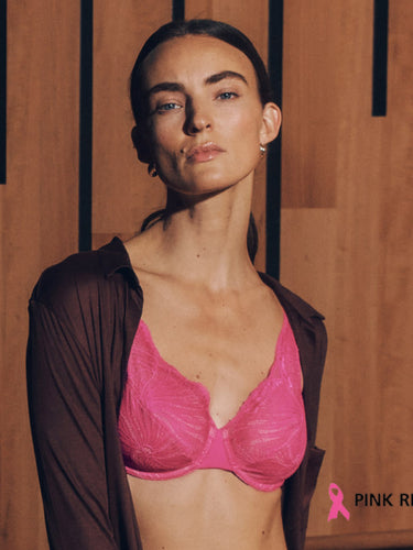 The current Fall/Winter 2025 collection celebrates the symbolic color of the Pink Ribbon with the bras from the 'Touch Feeling' and 'Lilith' series in the shades Pink Tourmaline, Blush, and Very Berry.