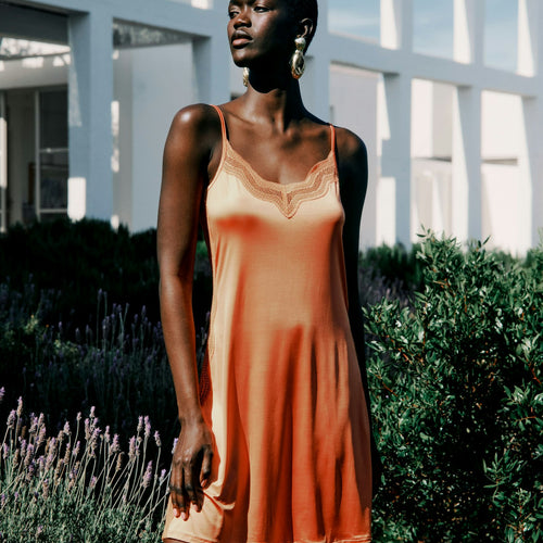 This delicately shimmering bodydress, made from a flowing viscose blend that's MADE IN AUSTRIA, is the must-have of the season. Generous lace inserts along the neckline and the entire side make this velvety-soft slip dress a real eye-catcher. Thanks to the antistatic fabric, this sleeveless undergarment does not cling to outer clothing. The cooling properties of viscose make this sophisticated negligee ideal as a luxurious nightgown in summer, especially for festive occasions such as Mother's Day or weddings.