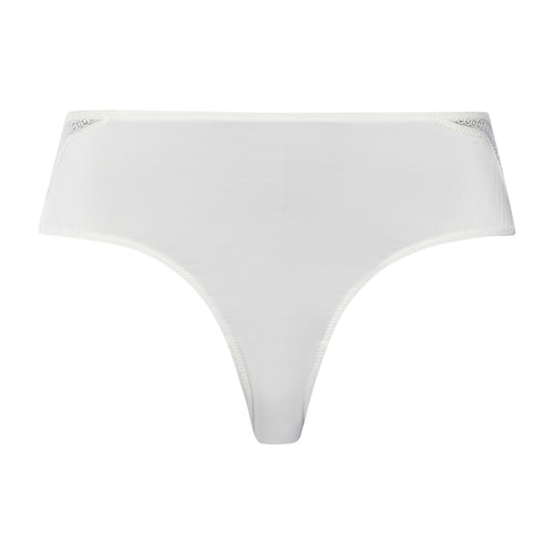 The graphic, modern perforated lace runs decoratively along the sides of these high cut panties all the way to the back. The delicate scalloped trim is invisible under thin clothing. The antistatic fabric also makes these normal-rise panties a popular choice for summer, as they do not cling to clothing. The subtly shimmering viscose blend is made in Austria and impresses with its unique softness. Mix and match with different bras and daywear in the same design.