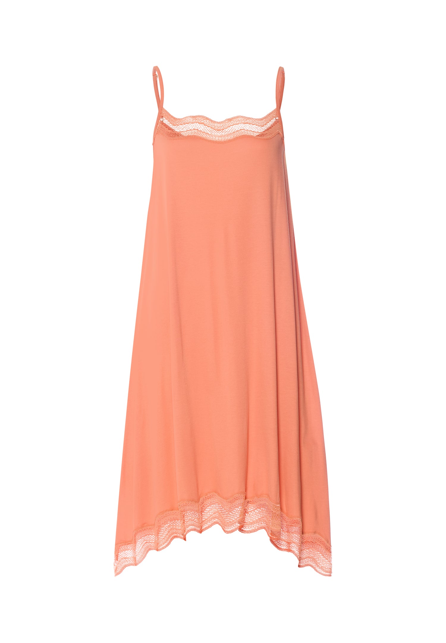 - Flowing sleeveless slip dress with scalloped lace decoration along the neckline and hem