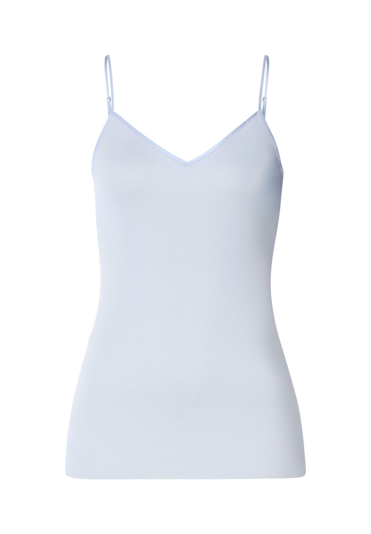 - 100% mercerized cotton spaghetti cami with hemless bottom