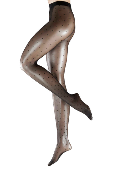 Dots are a major highlight again this season. These transparent tights serve this trend with their modern polka dots. A classic, which goes perfect with any outfit and any occasion. Processed with satin sheer technology (15 den), these tights offer you optimal comfort thanks to their perfect fit.
