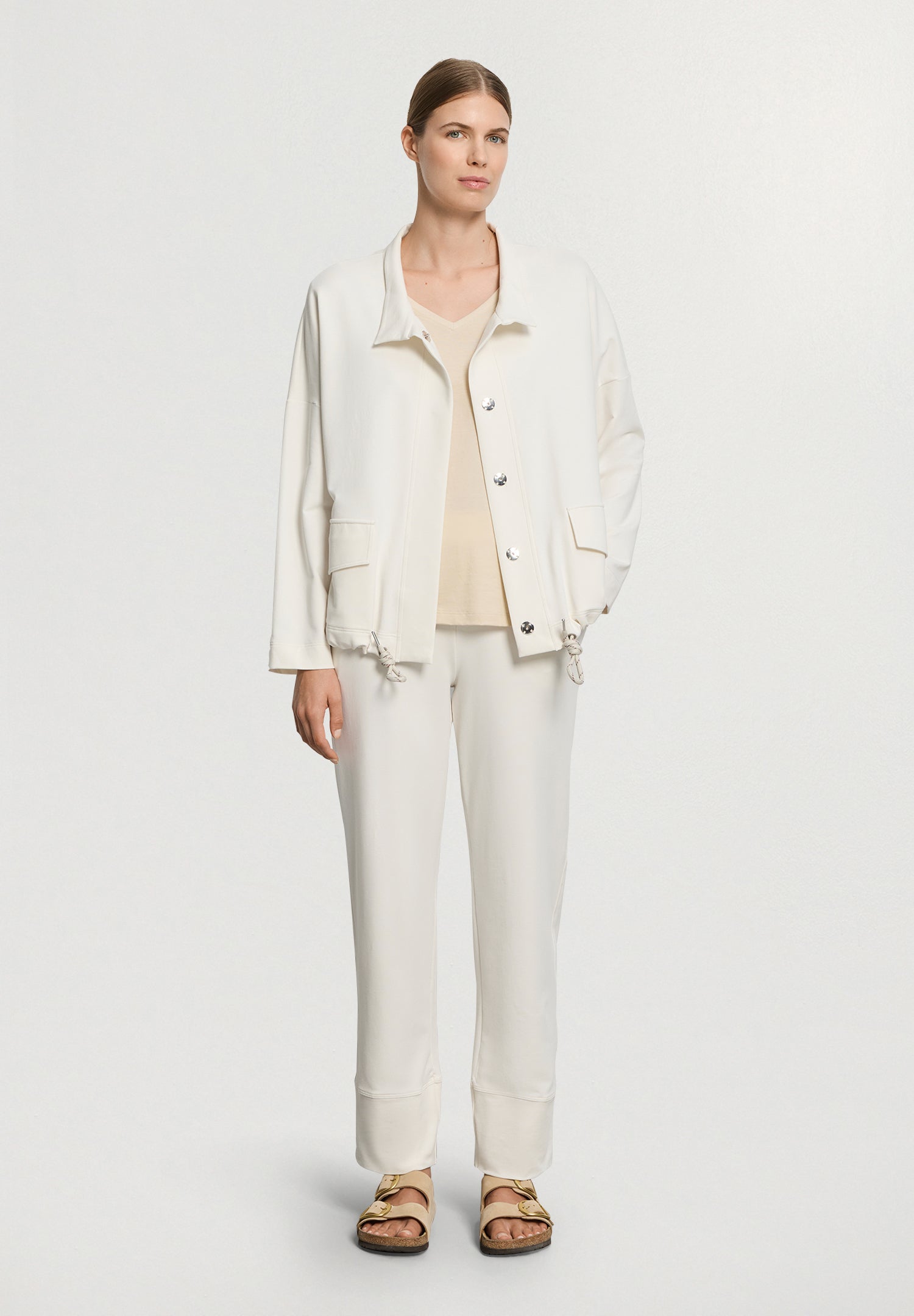 Travel and relax sustainably with this long-sleeve jacket made from organic cotton. The loose, comfortable cut with stand-up collar, snaps, flap pockets, and a drawstring at the hem makes it perfect as modern travel wear and guarantees maximum comfort. Especially in summer, the lightweight long sleeve jacket with oversized sleeves is the perfect companion for balmy evenings on the terrace or a refreshing sea breeze. Our linings are known for their soft feel and shape retention. Pair with the matching shorts or cropped pants for a high-quality street style either at home or on the go.