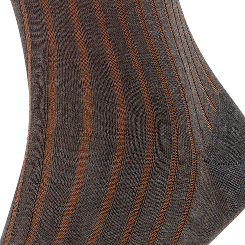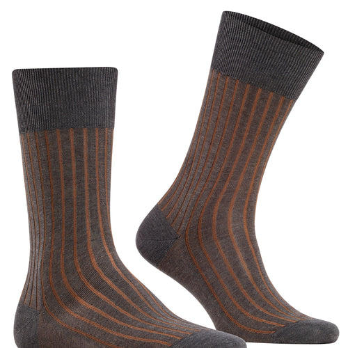 Elegant, discretely patterned business sock made of mercerised cotton. With this design, the second colour remains in the shadow of the actual colour. Pressure-free, hand-linked toe seam. Reinforced stress zones ensure optimum durability. Easy care.