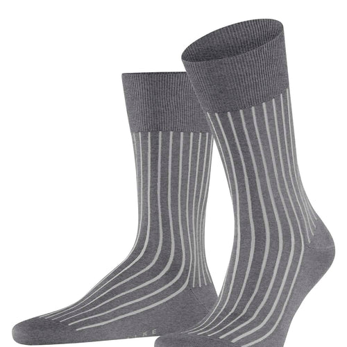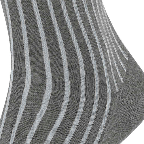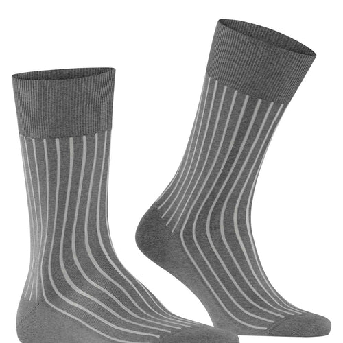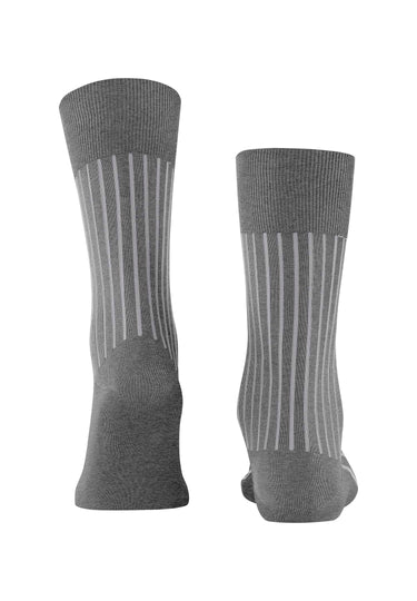 Elegant, discretely patterned business sock made of mercerised cotton. With this design, the second colour remains in the shadow of the actual colour. Pressure-free, hand-linked toe seam. Reinforced stress zones ensure optimum durability. Easy care.