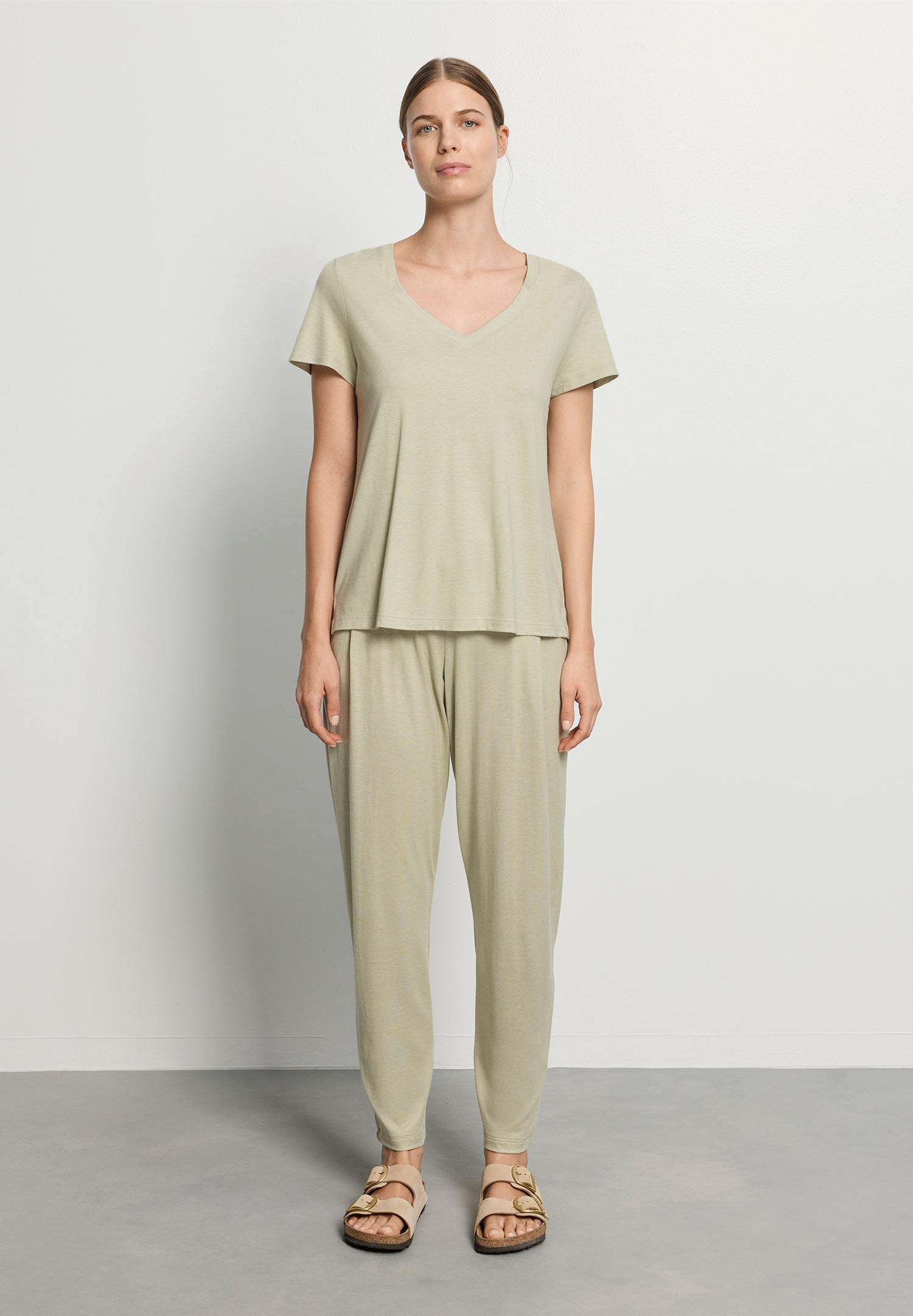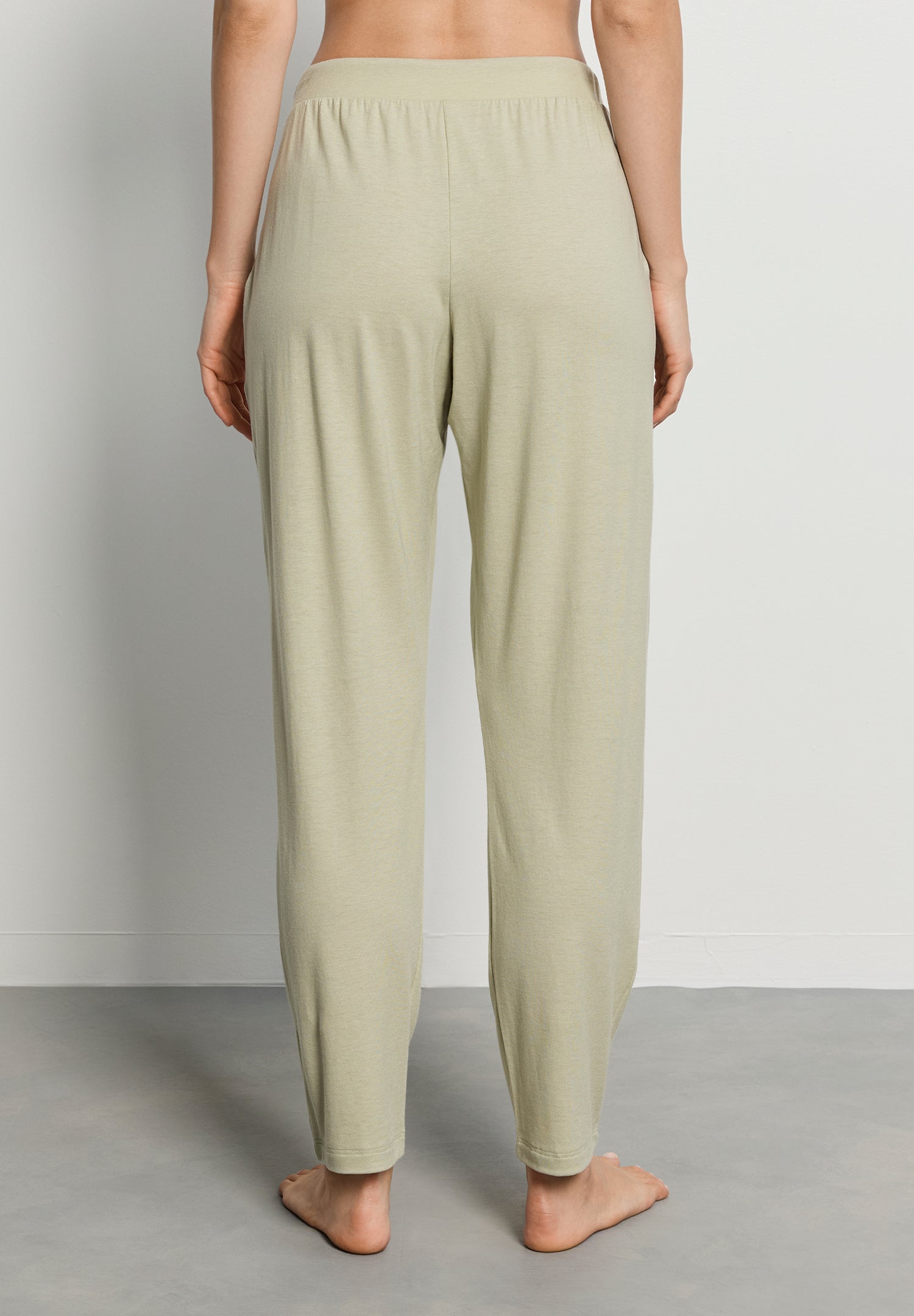 Relax in style around the clock in this loungy nightwear vignette. Called Sleep & Lounge, it was designed for versatility with its many options for customized modern and trendy looks. This mix & match collection offers soft wovens or single jersey cottons for sleeping or lounging. Styled for ease of wear, this pant pulls on easily, features side pockets and has a tapered leg.